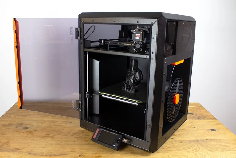 Diseño CoreXY cerrado, alineado con el nuevo estándar de impresoras de escritorio rápidas y precisas.